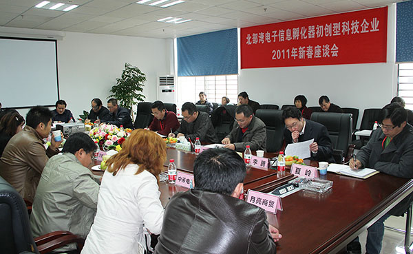 2011年1月20日,北部灣電子信息孵化器初創(chuàng)型科技企業(yè)2011年新春座談會在中電北海產(chǎn)業(yè)園會議室舉行。北海市科技局局長黃健、北海市工業(yè)園區(qū)管委會副主任王剛、中電北海產(chǎn)業(yè)園常務副總經(jīng)理索耀宗、以及9家入孵企業(yè)負責人一起,暢所欲言,共話新春。